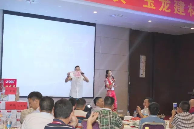 此次會(huì)議,主要目的是為了答謝新老客戶(hù)對(duì)玉龍建材的支持與信任。會(huì)議主要分為參觀(guān)營(yíng)銷(xiāo)中心、新品發(fā)布、優(yōu)惠政策公布、晚宴(領(lǐng)導(dǎo)致辭、嘉賓致辭、文藝演出、抽獎(jiǎng)游戲、頒獎(jiǎng)典禮)、參觀(guān)工廠(chǎng)等環(huán)節(jié)。