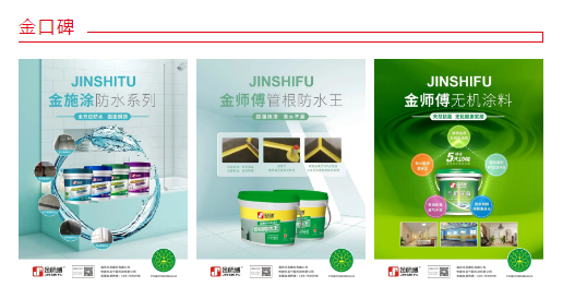 在研發(fā)團(tuán)隊(duì)的共同努力下,金師傅系列產(chǎn)品線在原有家裝“防開裂”“防脫落”“防水”及其他功能性裝修材料領(lǐng)域基礎(chǔ)上延伸出“內(nèi)外墻乳膠漆”“水性工業(yè)漆”“環(huán)保膠黏劑”“防腐地坪漆”等細(xì)分產(chǎn)品。