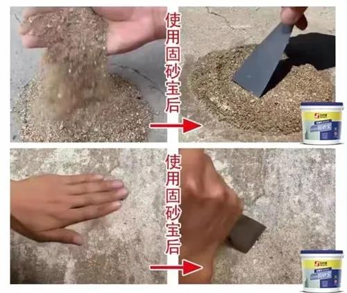 它的優(yōu)點(diǎn)很突出:后期強(qiáng)度高,固砂效果好,能顯著改善基材的界面性質(zhì),滲透性極強(qiáng),封閉性極好,能強(qiáng)化基層。固砂寶涂刷后,用手摳不會(huì)掉粉掉砂。