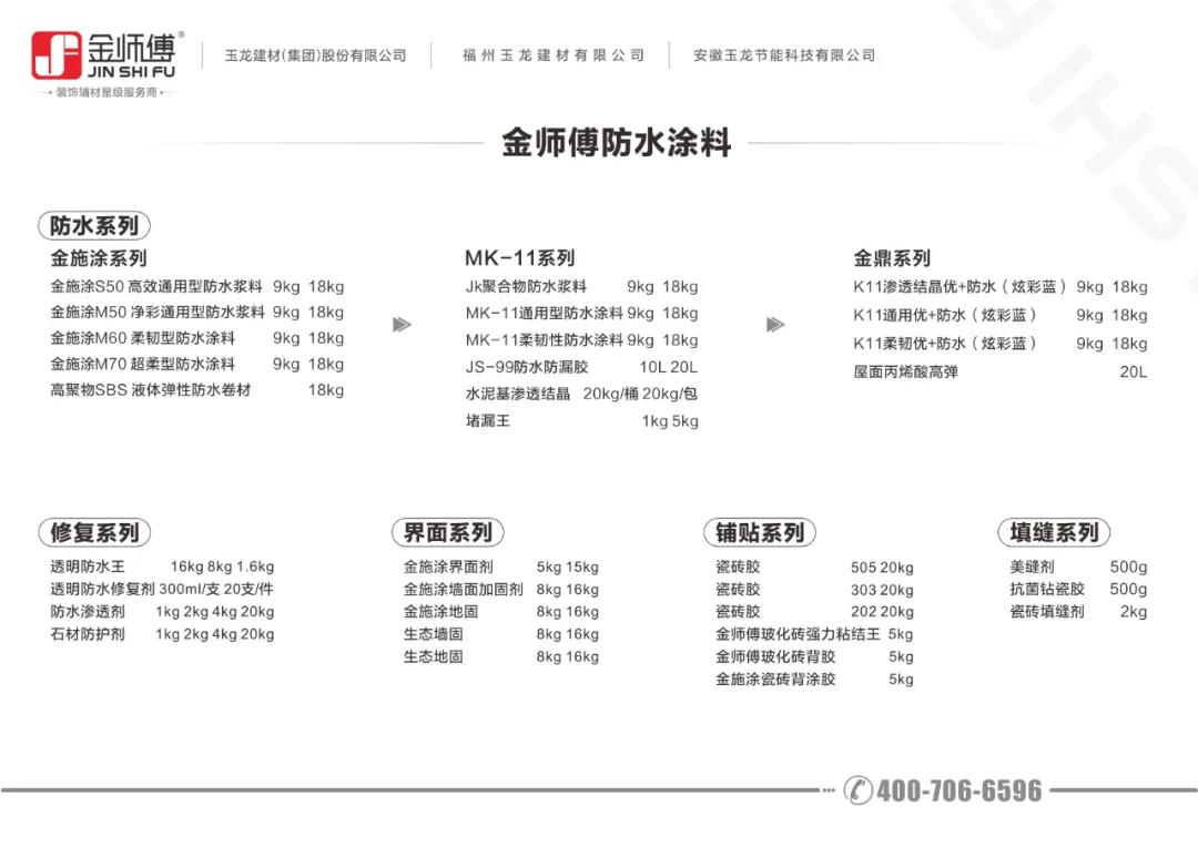 金師傅防水產(chǎn)品體系